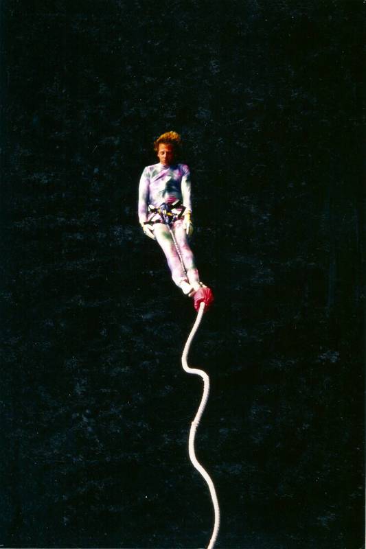 L’élastique me prend en charge et me décélère déjà. Il faut absolument passer le troisième salto avant l’ouverture. Mon unique lien m’arrête et m’arrache le bras en arrière.